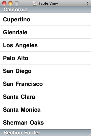 Table views can be configured to use either plain or grouped style. In the grouped style, the rows are grouped together in sections that are represented by rounded rectangles. For example, the following figure shows a table view configured to use the grouped style: