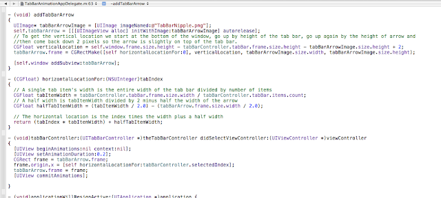 Generally, we need to implement the animation based tab bar app nowadays.. we already did simple tab bar app.. we have to add some UIview animations.. then it will look something shown in above picture..... thats it animation based tab bar app ready....Follow the simple code in your appdelegate method...import the protocol of tabbarcontrollerdelegate in appdelegate.h file